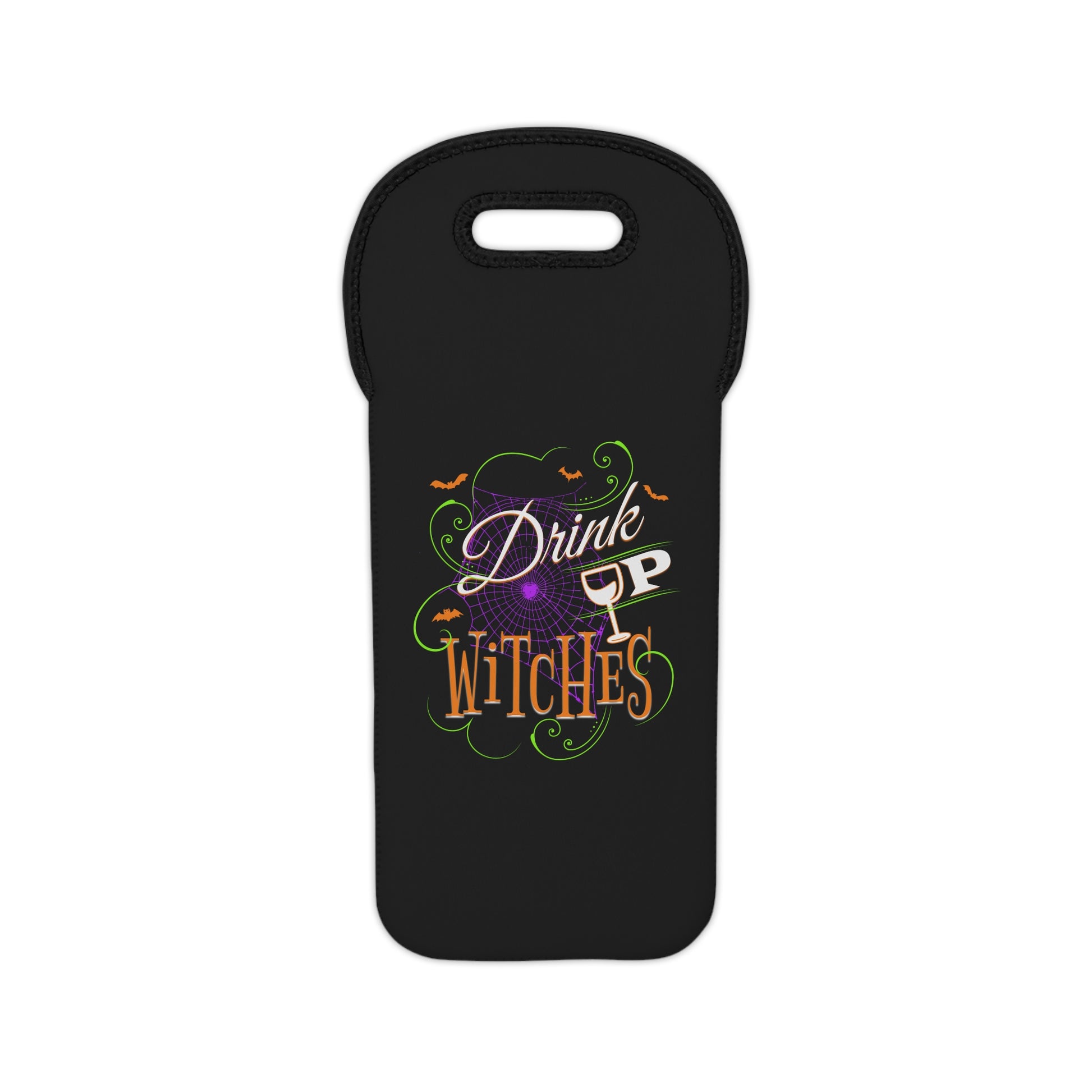 Halloween Spiderweb and Bats Wine Tote Bag - Drink Up Witches