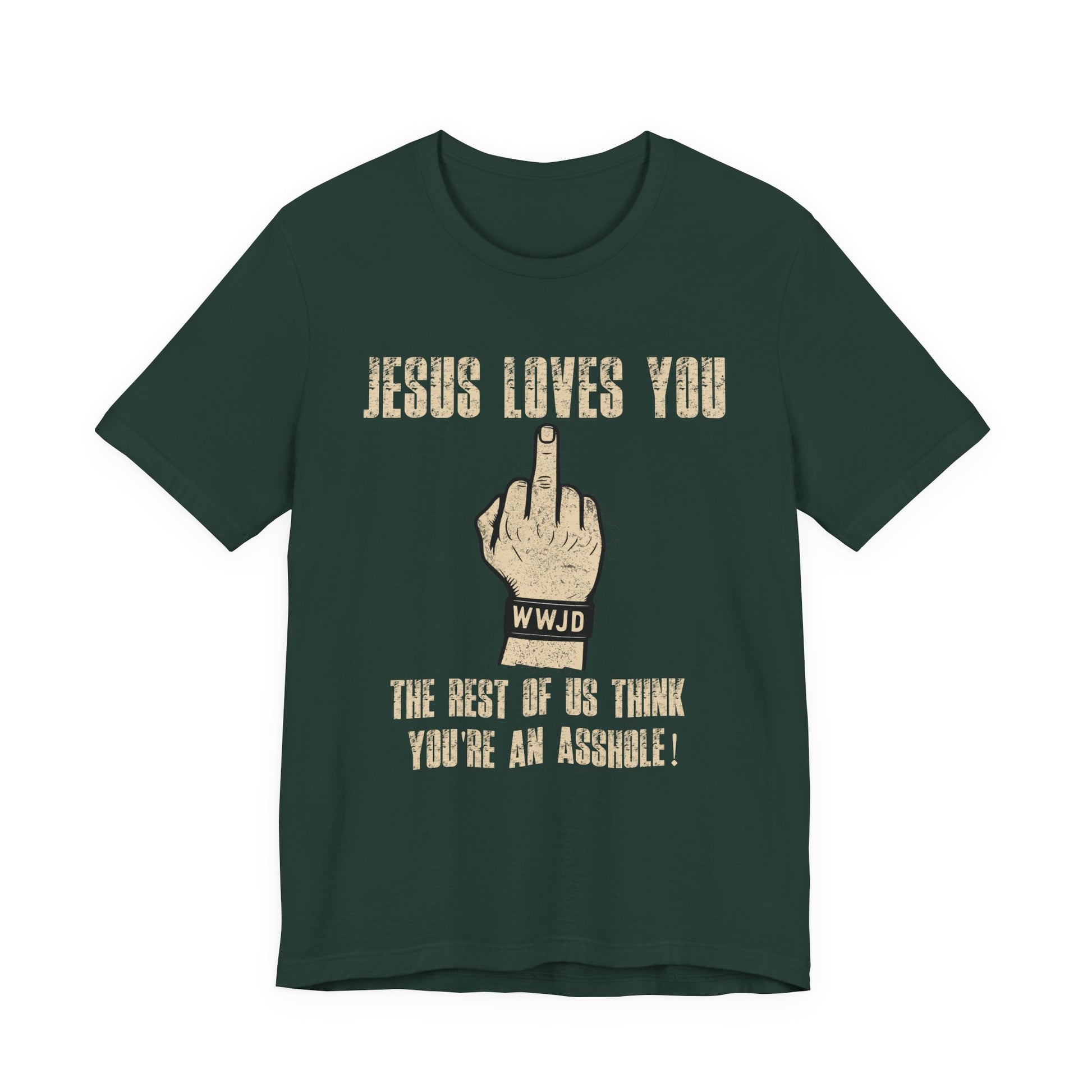 Offensive Graphic Tee "Jesus Loves You — The Rest Think You're an Asshole"